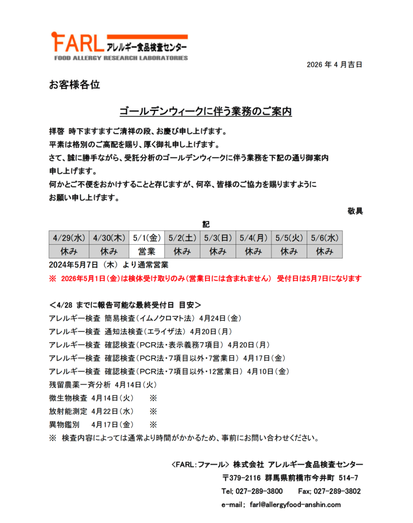 GW中休業のお知らせ
